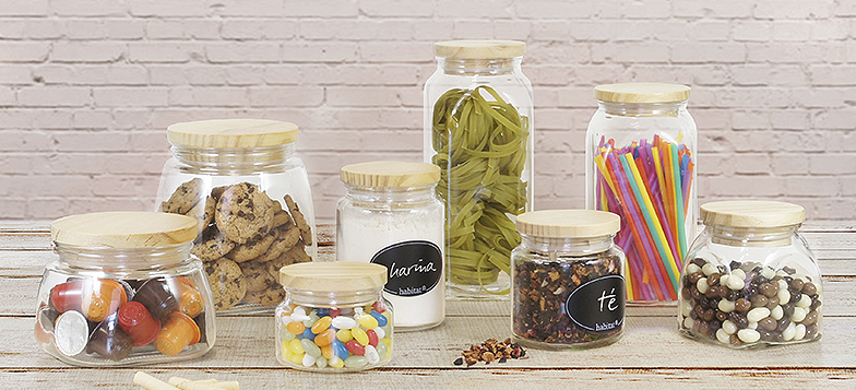 8 TARROS DE VIDRIO CON TAPA DE MADERA Y PEGATINA PERSONALIZABLE INCLUIDA EN CADA ENTREGA.