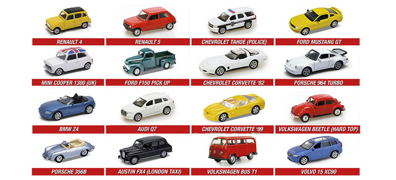 16 coches en miniatura, réplicas oficiales de los modelos más emblemáticos