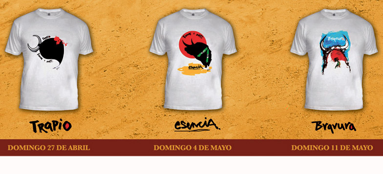 3 CAMISETAS TAURINAS UNISEX, FABRICADAS EN ALGODON 100% Y DISEÑADAS POR EL MAGNIFICO PINTOR ALEX GALCERÁ