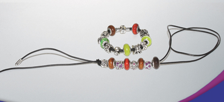28 ABALORIOS FABRICADOS EN MADERA, CRISTALES Y CIRCONITAS CON ACABADOS BAÑADOS EN PLATA